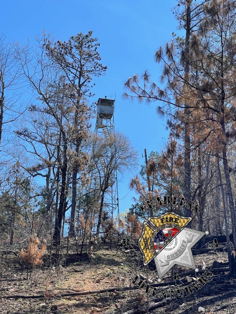 US Forest Service fire tower on Parsons Mountain in the Sumter National Forest. The tower still appears to be in use as the wood stairs were recently replaced.